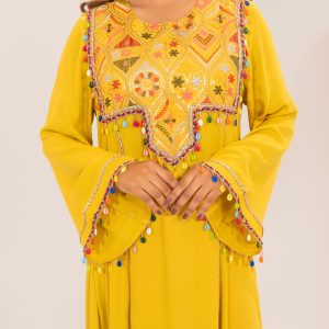 Featuring intricate detailing and a flattering cut, it’s versatile enough to be dressed up with accessories or kept simple for an effortlessly chic look. Easy to wear and suitable for all body shapes, this kaftan is a wardrobe essential for every woman who loves to blend fashion with comfort.