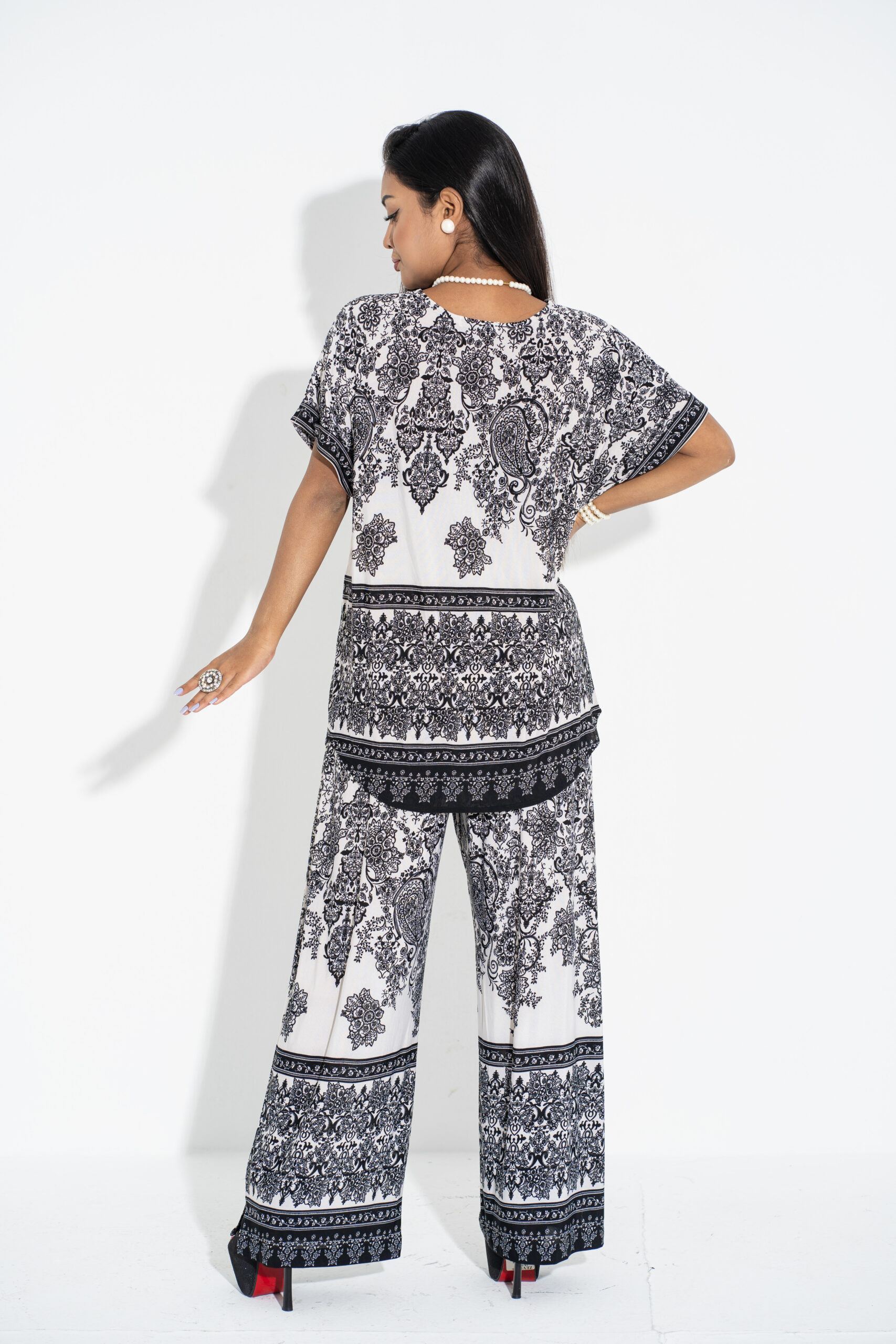 - Coordinated Pants: Paired with comfortable, stylish pants for a complete look that’s as versatile as it is chic.